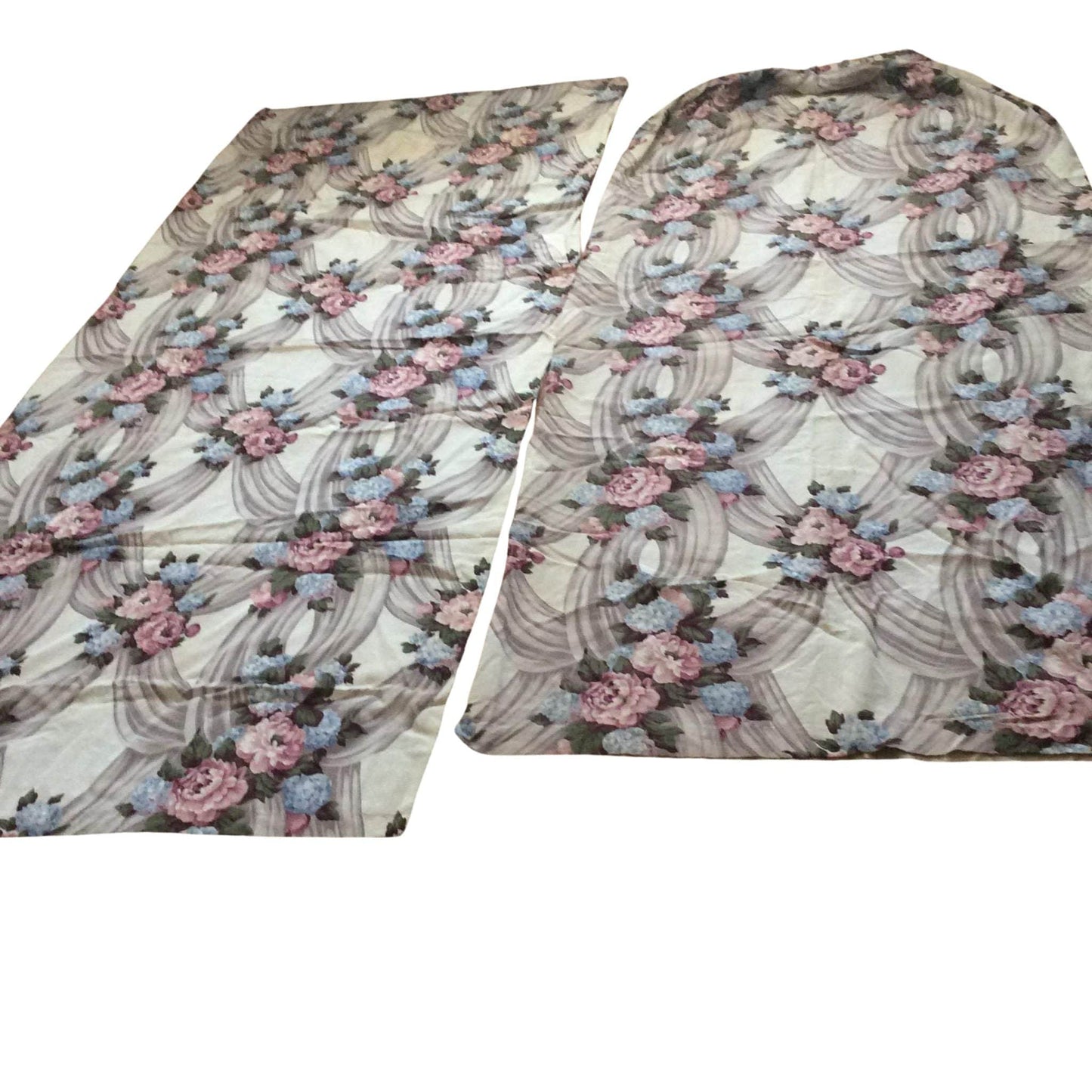 These rare gabardine fabric panels showcase authentic 1930s Art Nouveau floral prints in exquisite pastel colors. The substantial gabardine construction provides exceptional weight and texture, demonstrating the superior quality of vintage textile manufacturing. Each panel's elegant beige and multi-tonal color palette creates sophisticated appeal that represents the pinnacle of early 20th-century design. The generous dimensions of both panels provide ample salvaged fabric for multiple creative applications.