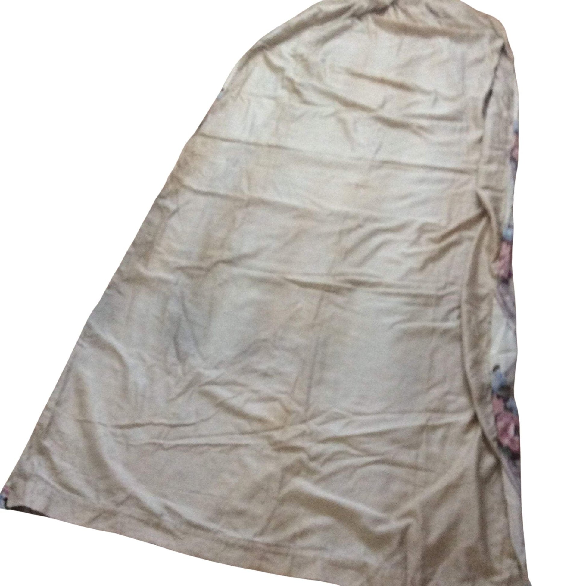 This Vintage 1930s Salvaged Fabric is a rare gabardine material featuring exquisite pastel colors in an Art Nouveau floral print. Each panel features elegant floral patterns in sophisticated colors of beige and multi-tonal hues, representing the pinnacle of early 20th-century textile design. This salvaged fabric consists of two pieces of antique drape panels that offer unique character and historical charm for discerning collectors and DIY enthusiasts. This premium gabardine salvaged fabric demonstrates the valuable durability of vintage textile manufacturing, making these pieces suitable for both decorative and functional use in creative projects.