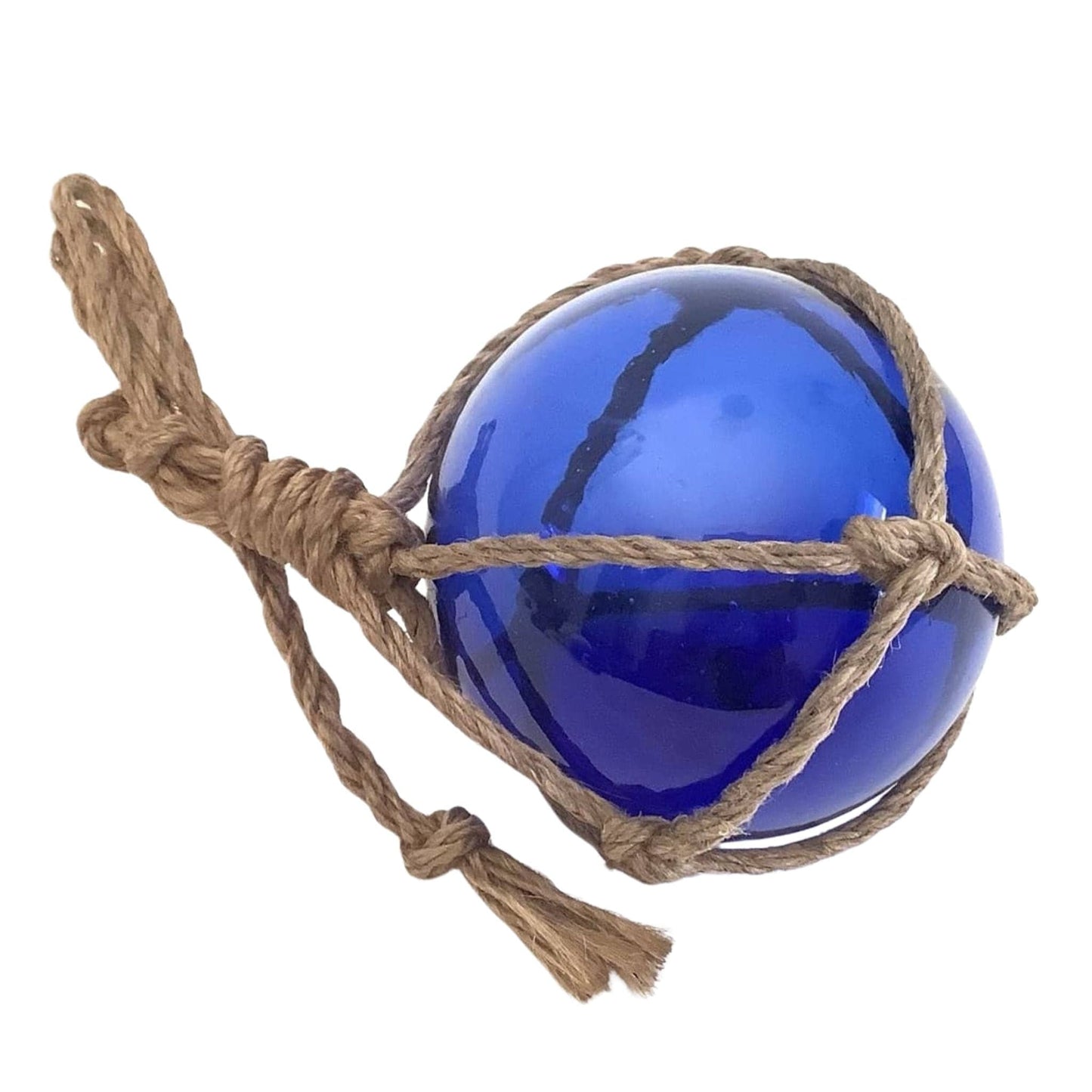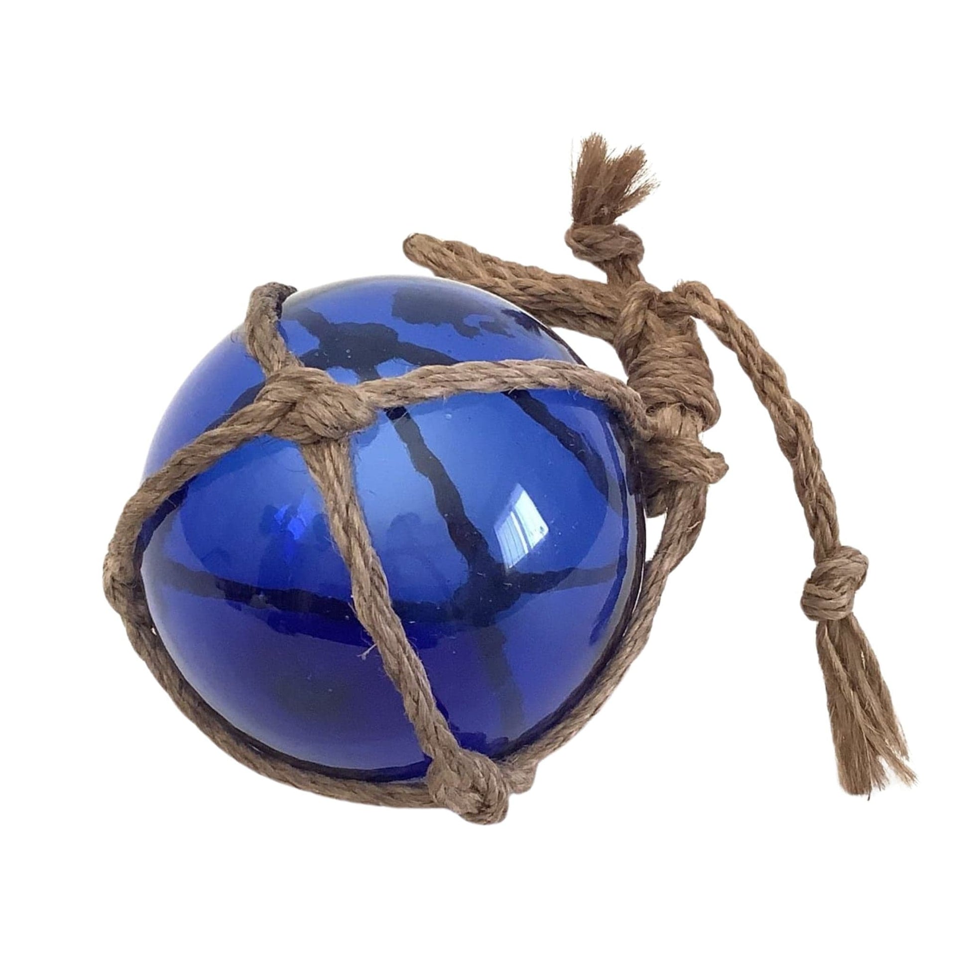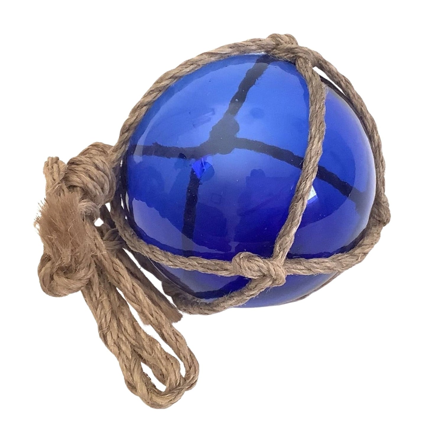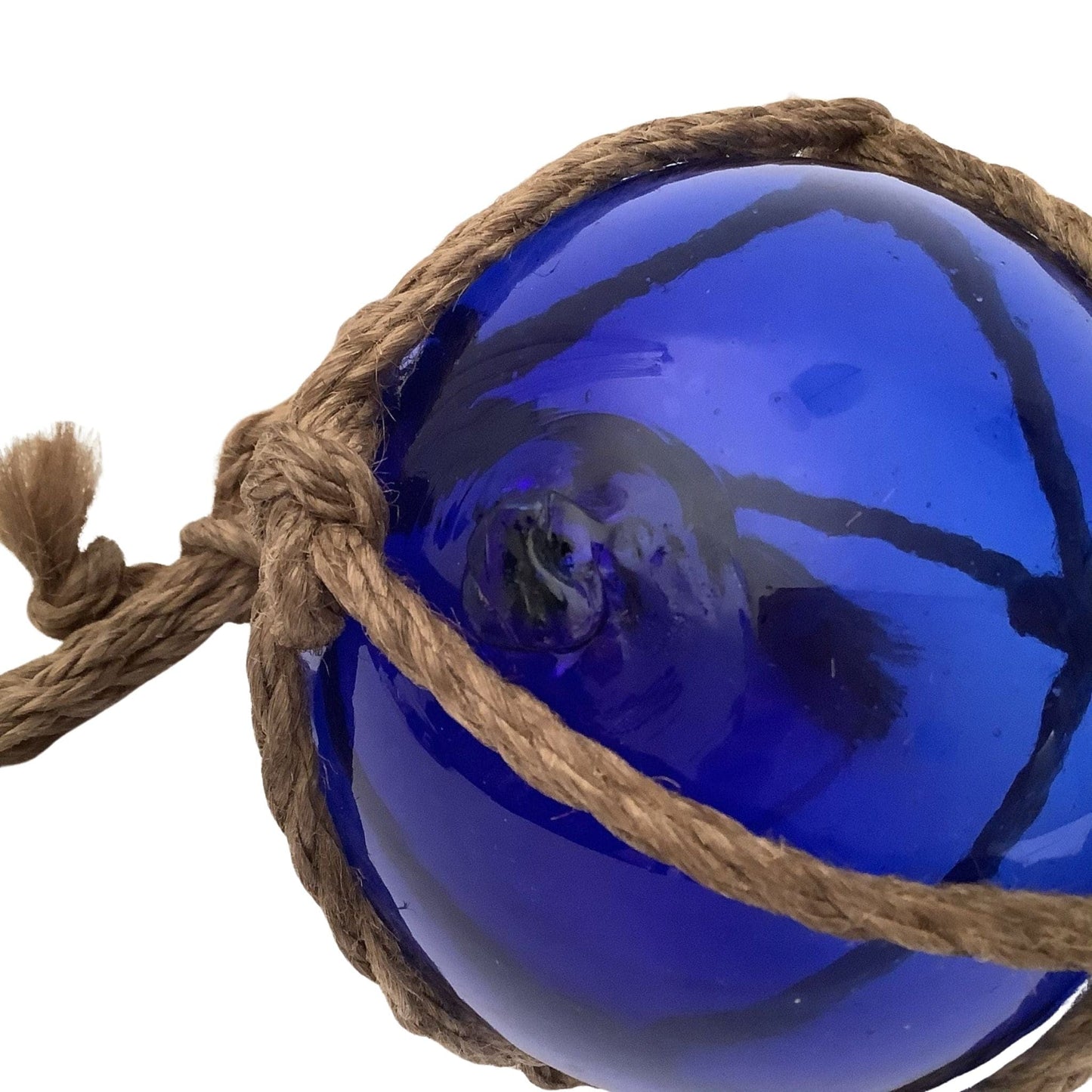 A genuine antique Japanese Blue Fishing Float collectible glass ball, in royal blue and encased in original jute netting, makes a stunning addition to any collection of maritime memorabilia. Its beautiful form, and good condition ensures it will be an elegant accent to any nautical-themed interior. Great collectible, revealing no signs of damage only normal signs of use.