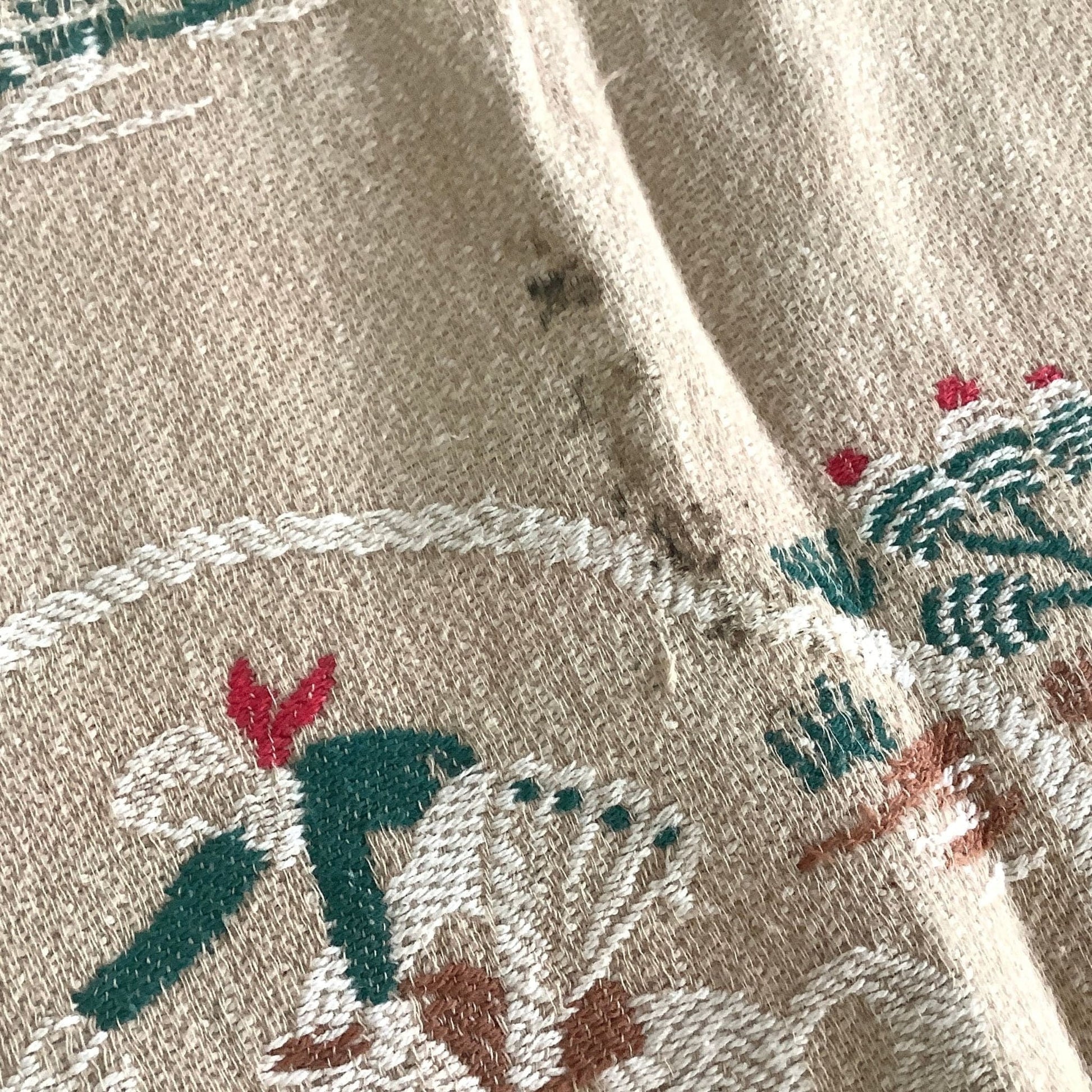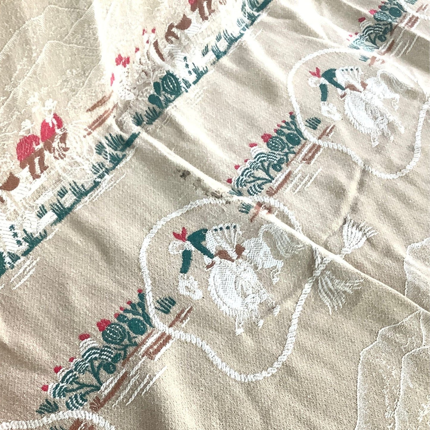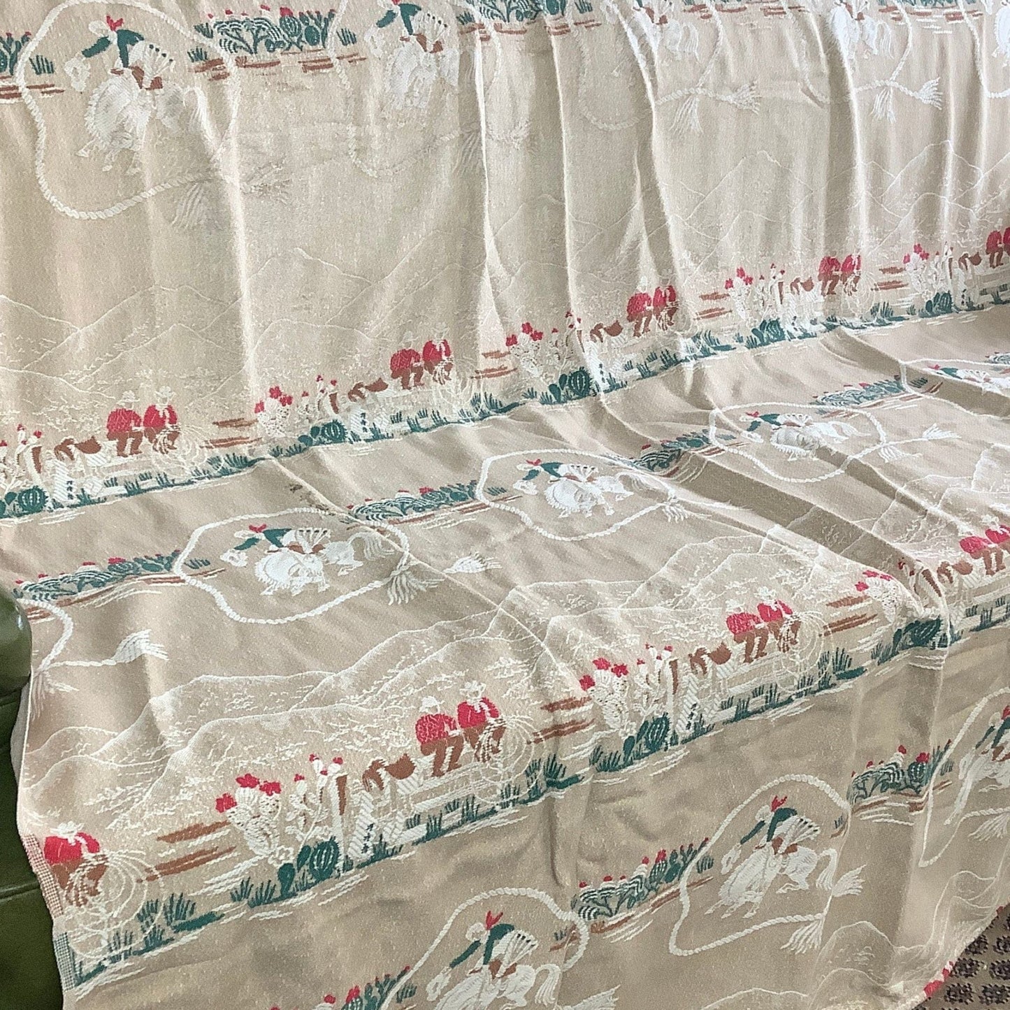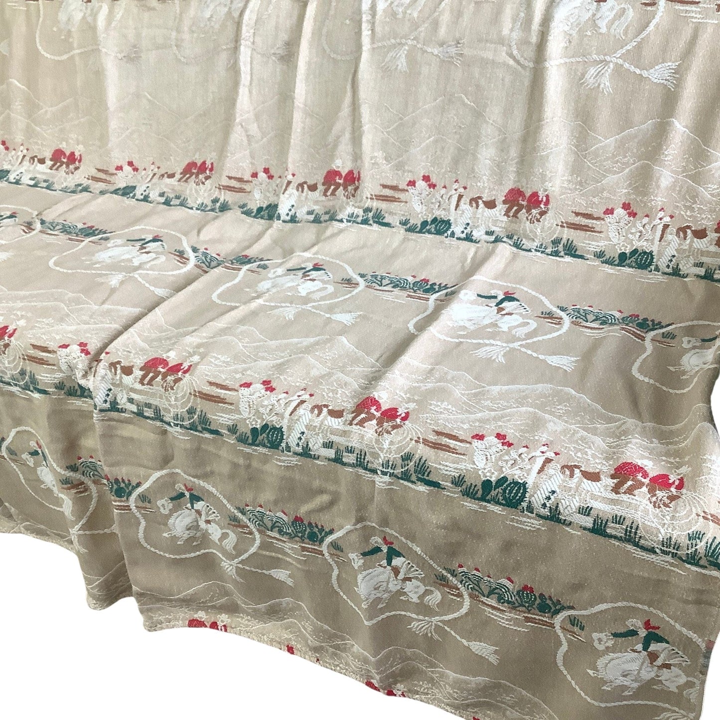 Ideal for collectors of vintage southwestern textiles, ranch decor enthusiasts, and anyone creating authentic western atmospheres. Perfect as a decorative throw, wall hanging, or accent piece for cabin and lodge settings. Appeals to those seeking genuine 1950s Americana with traditional cowboy and ranch themes.
