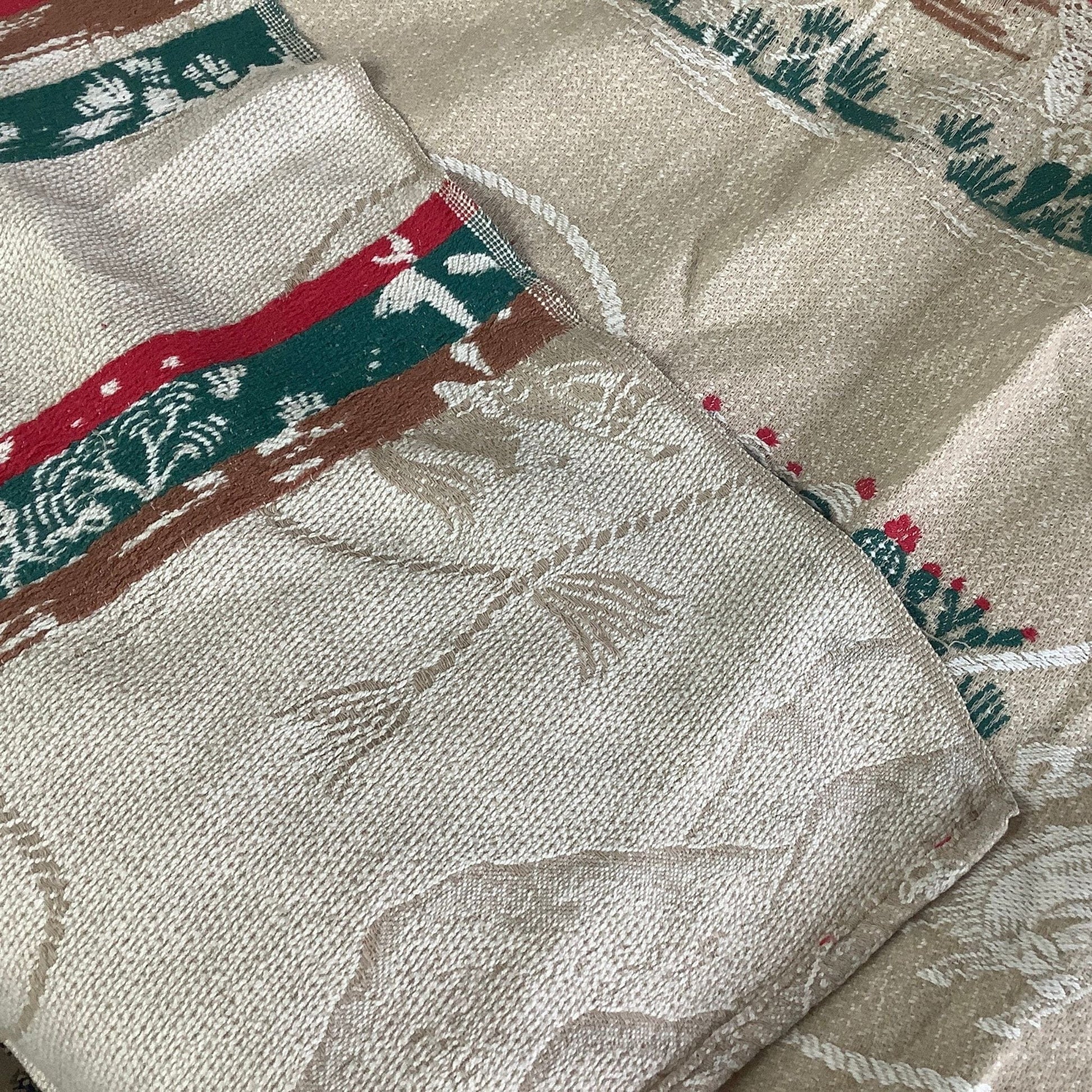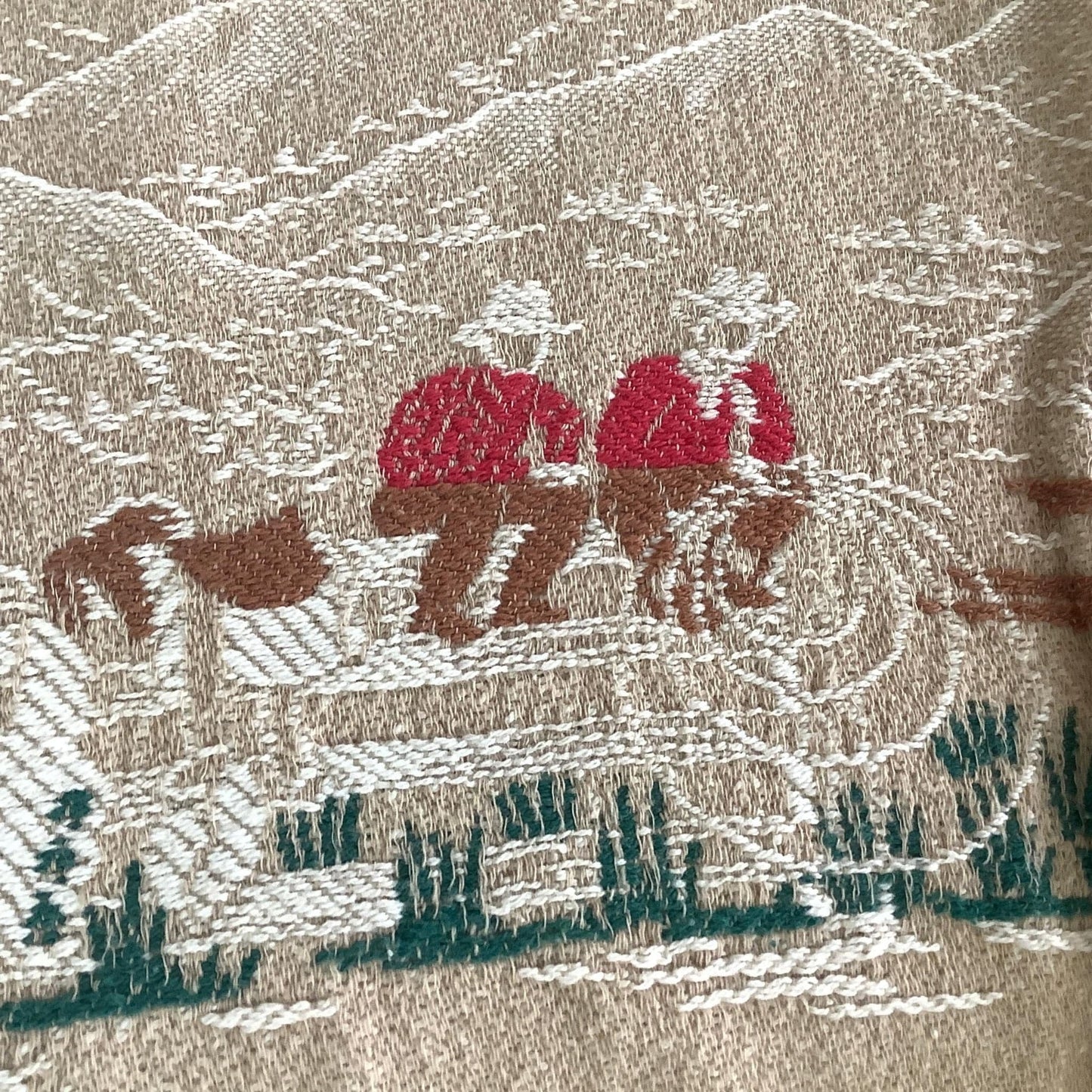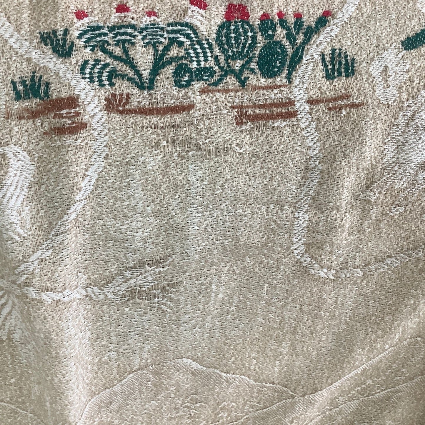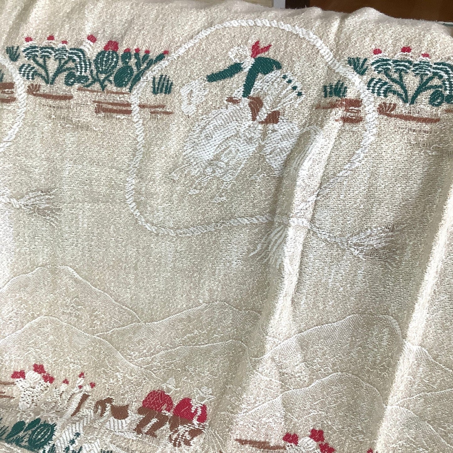 Ideal for collectors of vintage southwestern textiles, ranch decor enthusiasts, and anyone creating authentic western atmospheres. Perfect as a decorative throw, wall hanging, or accent piece for cabin and lodge settings. Appeals to those seeking genuine 1950s Americana with traditional cowboy and ranch themes.