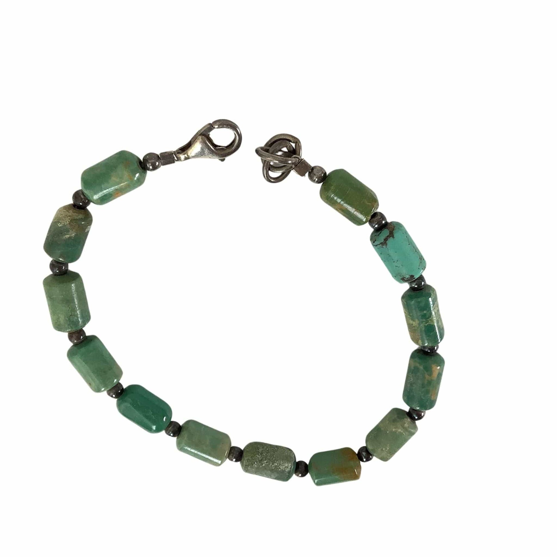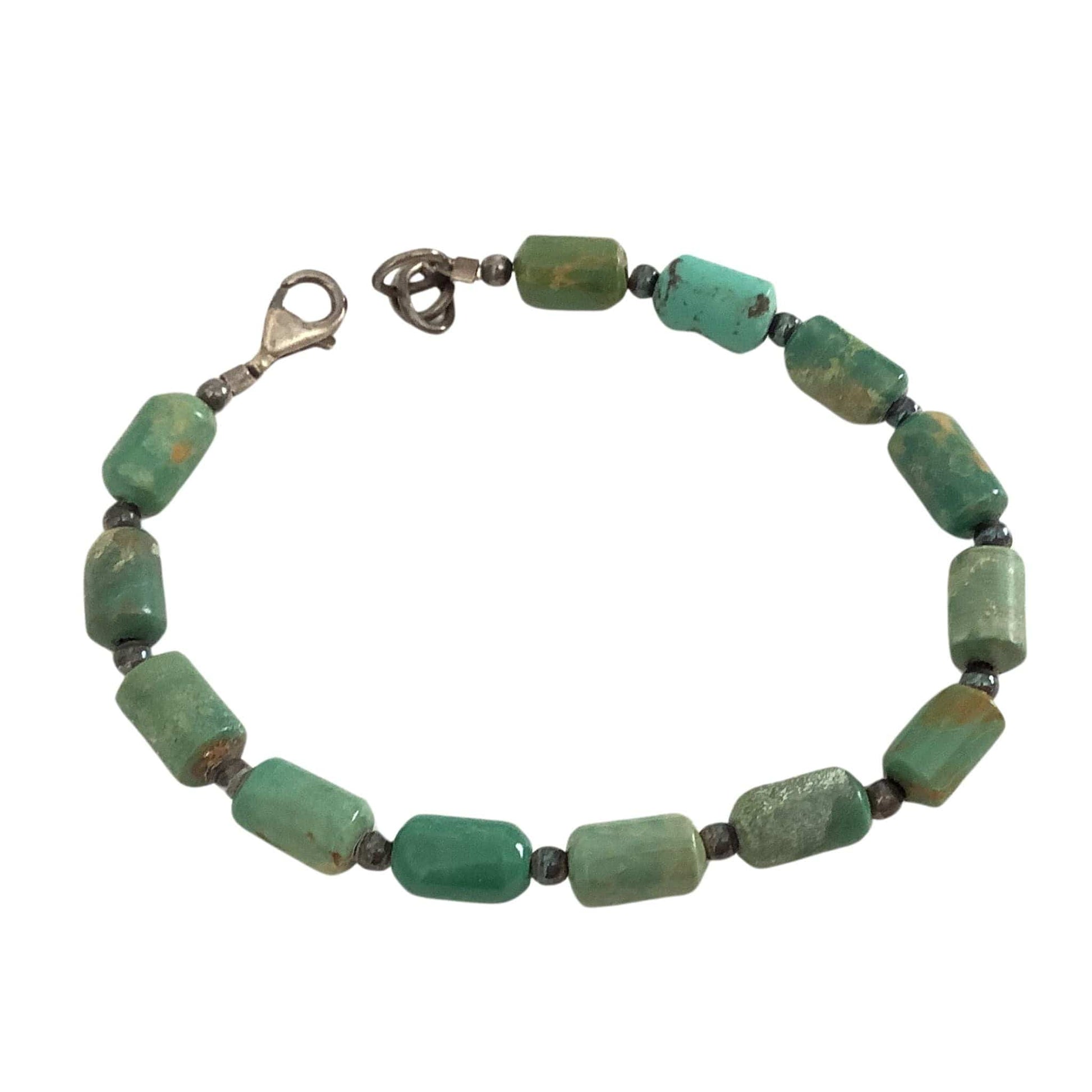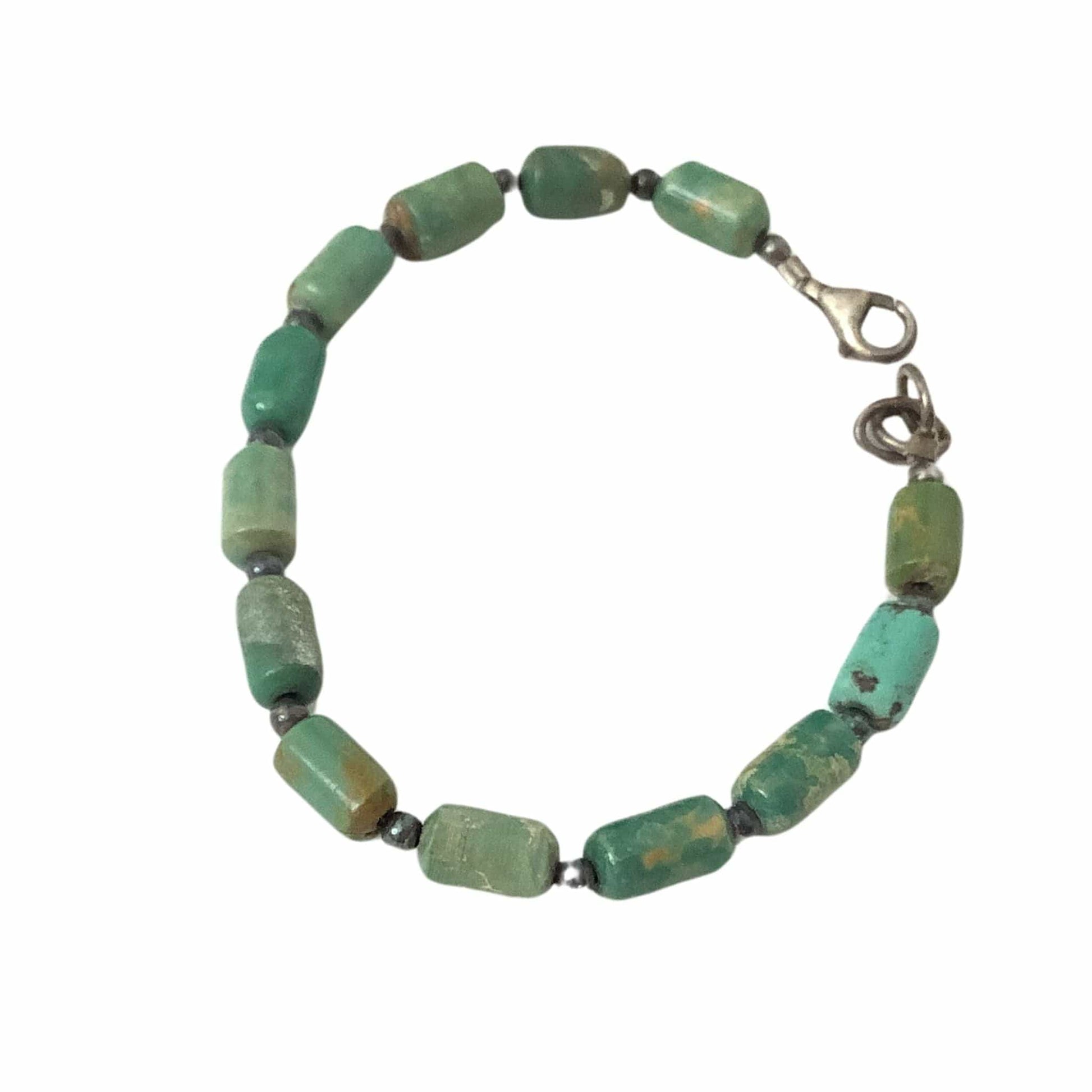Vintage Turquoise Bead Bracelet showcases traditional southwestern American fashion with small turquoise beads and sterling silver clasp crafted in the United States. This southwestern-western accessory features clean design and authentic craftsmanship, perfect as ideal layering piece or beautiful standalone bracelet for those starting turquoise jewelry collections.
