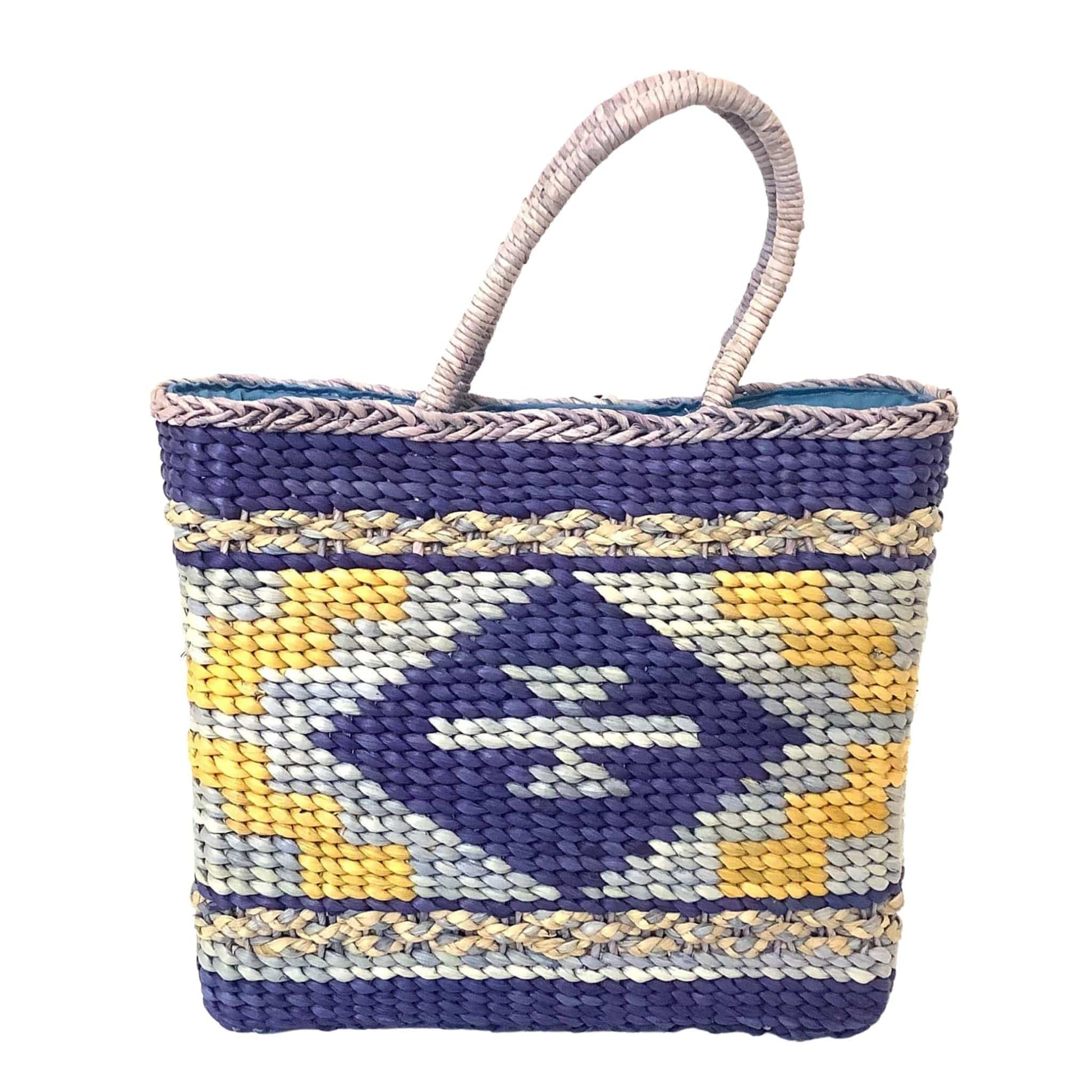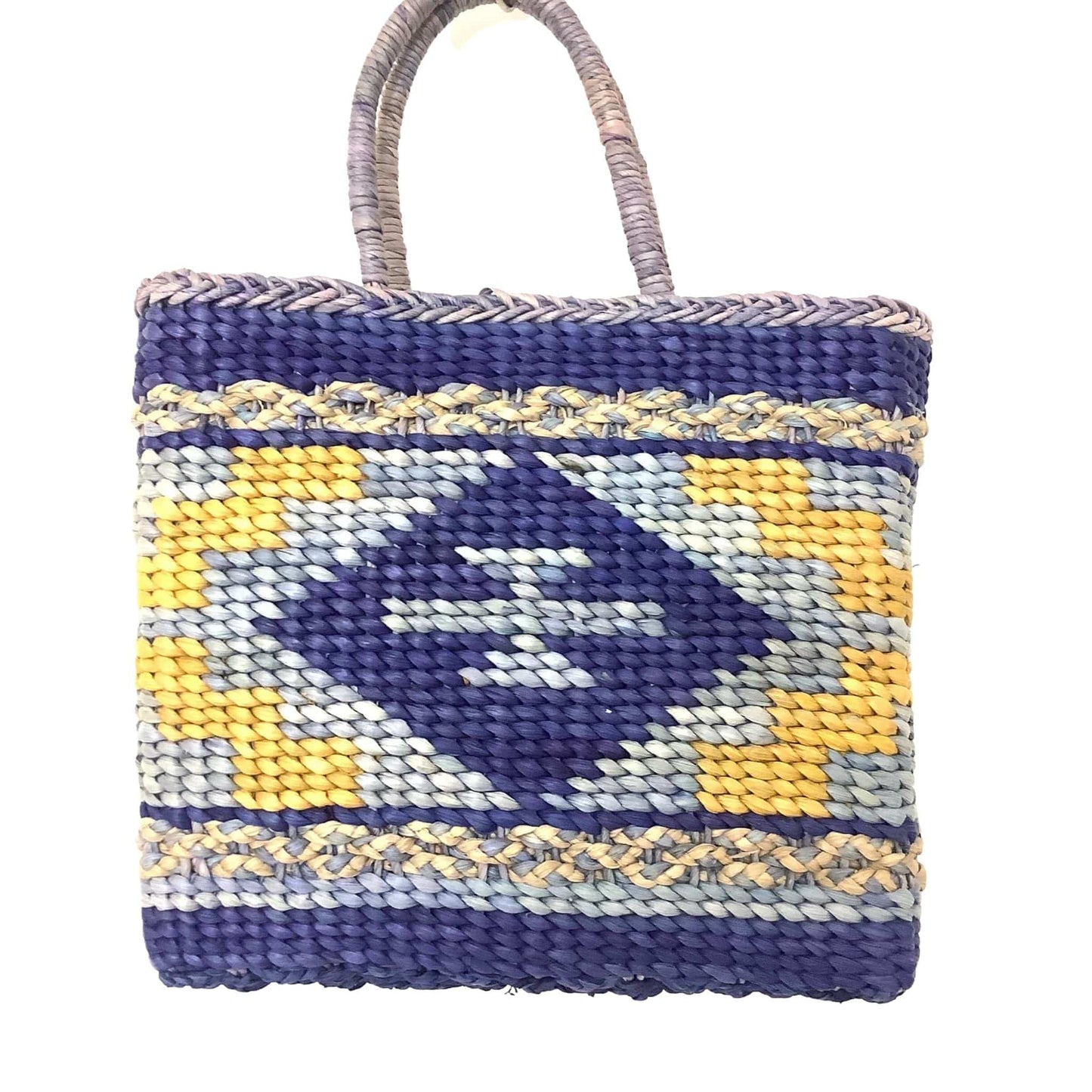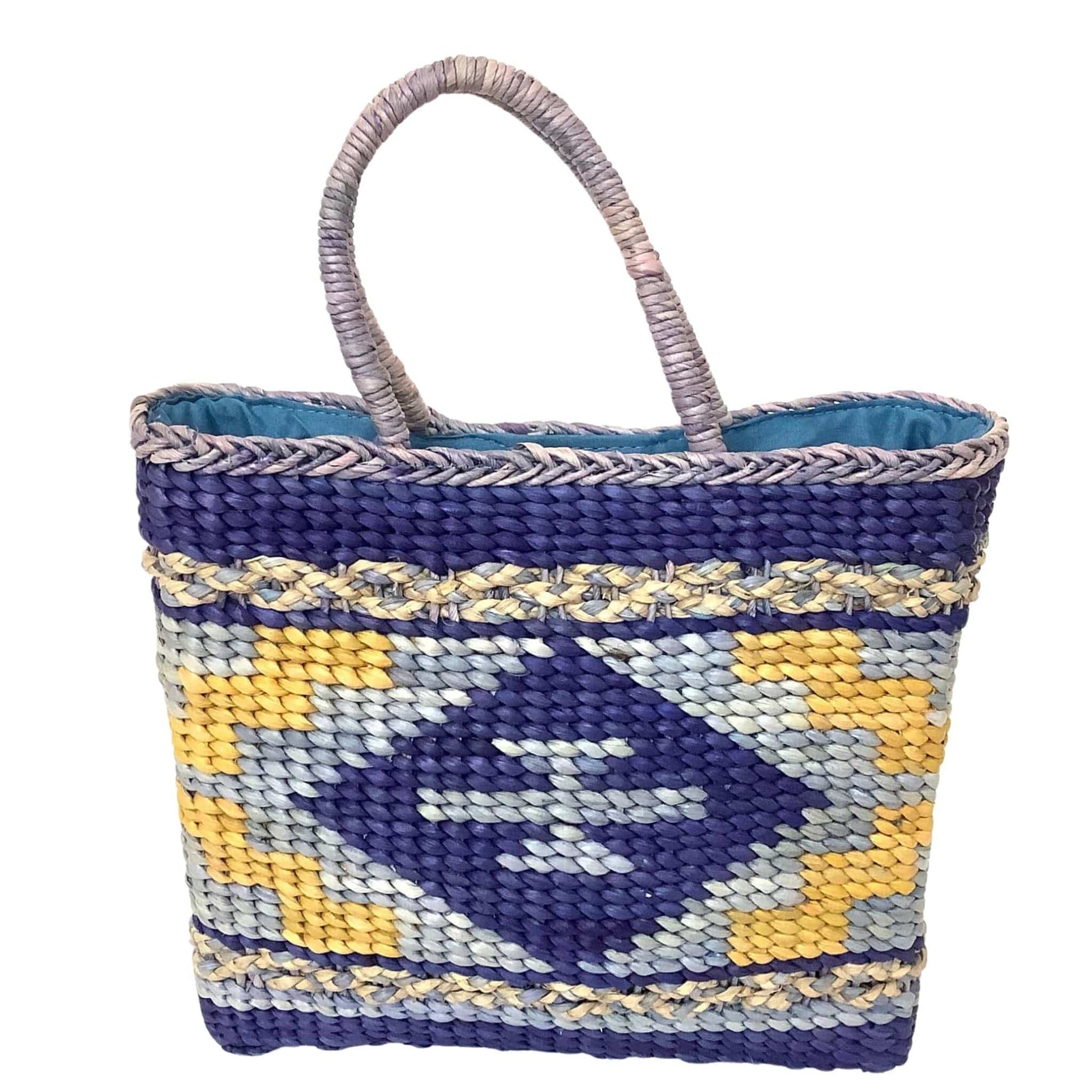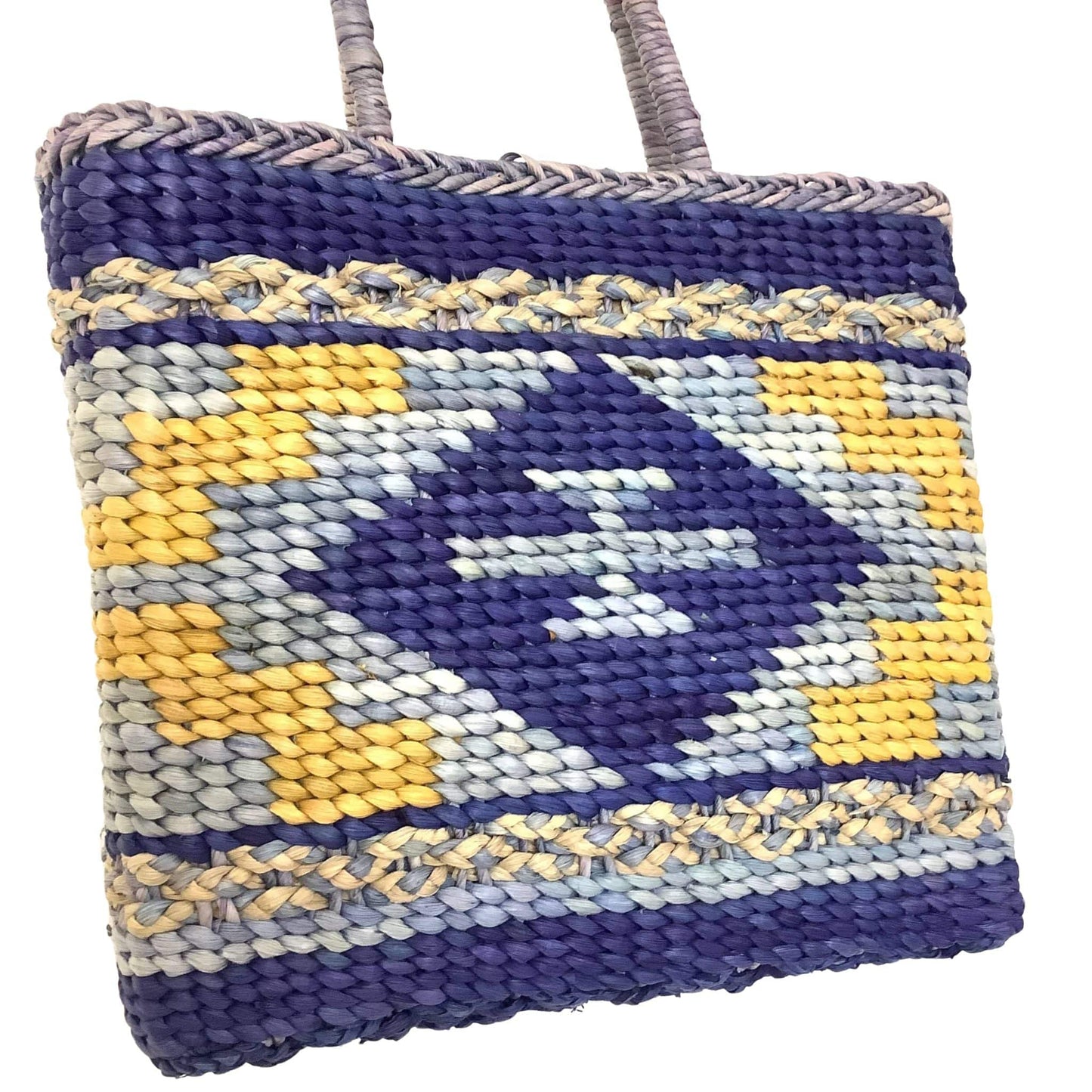 This tote bag is in excellent new old stock condition, never worn and carefully stored. A slight bend to the handles is present as shown in product images, consistent with the natural flexibility of corn husk materials. No damage or structural issues found. All weaving remains intact and secure. The cotton lining is clean and functional. Colors remain vibrant and true to original design.