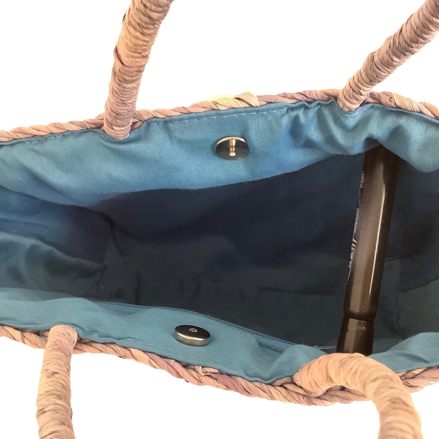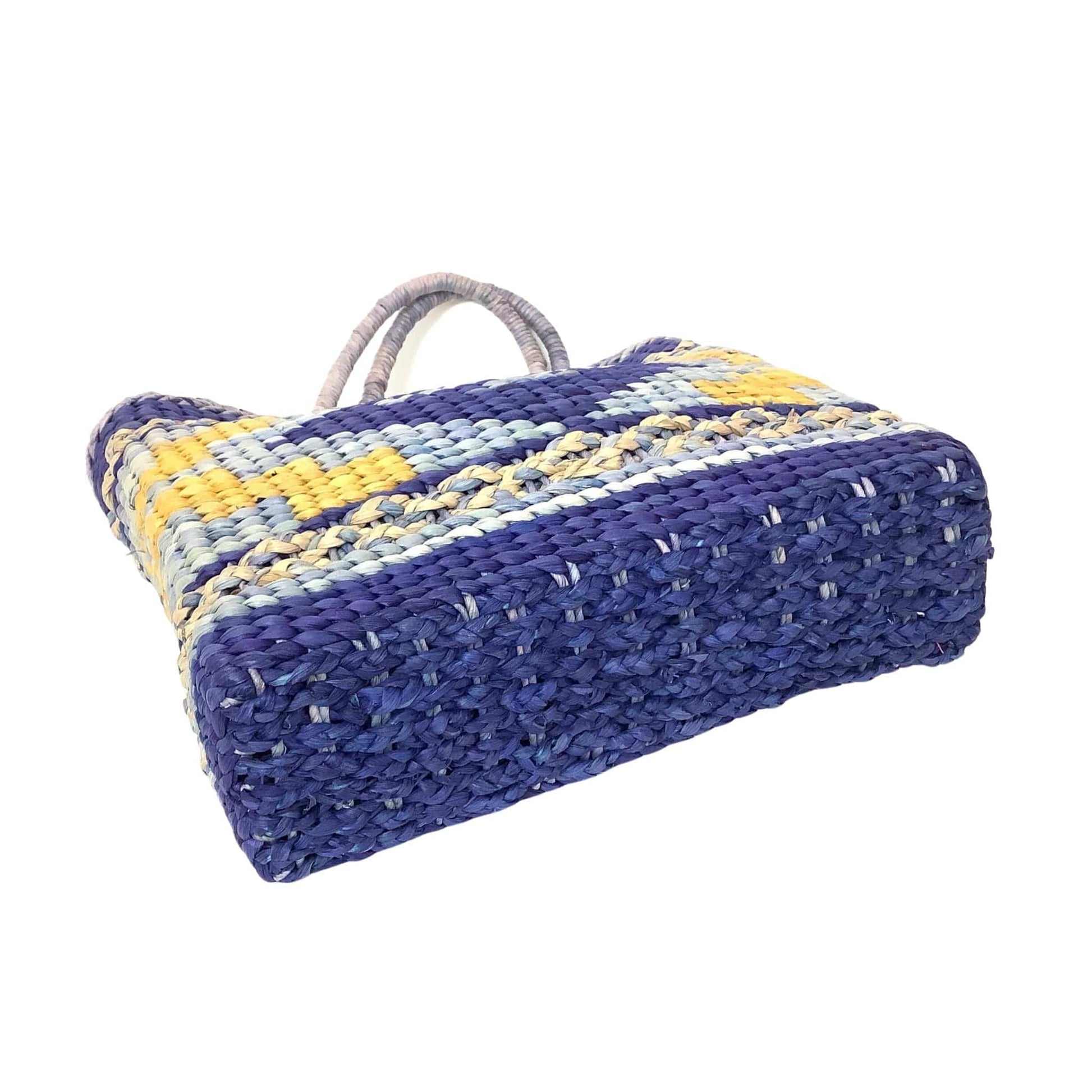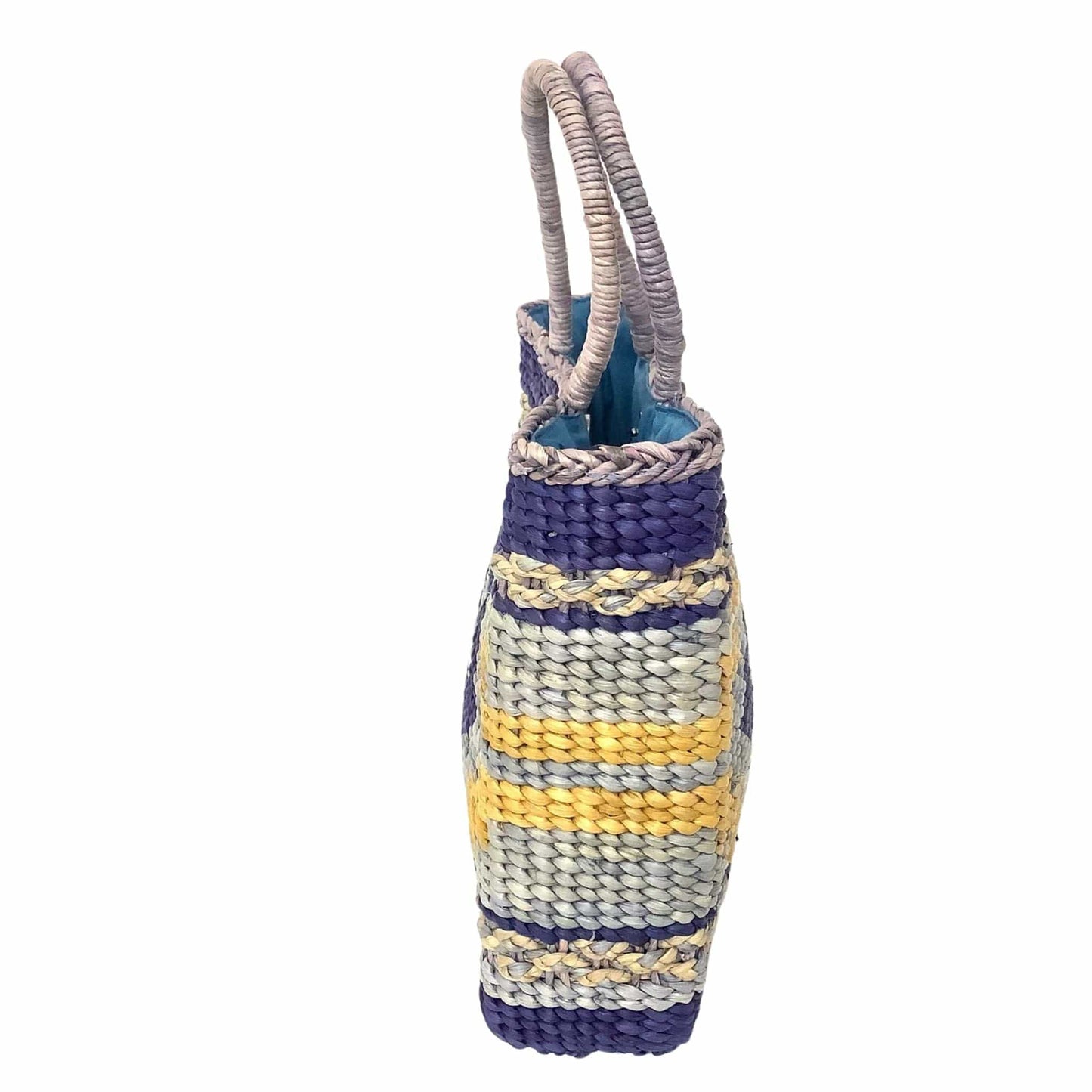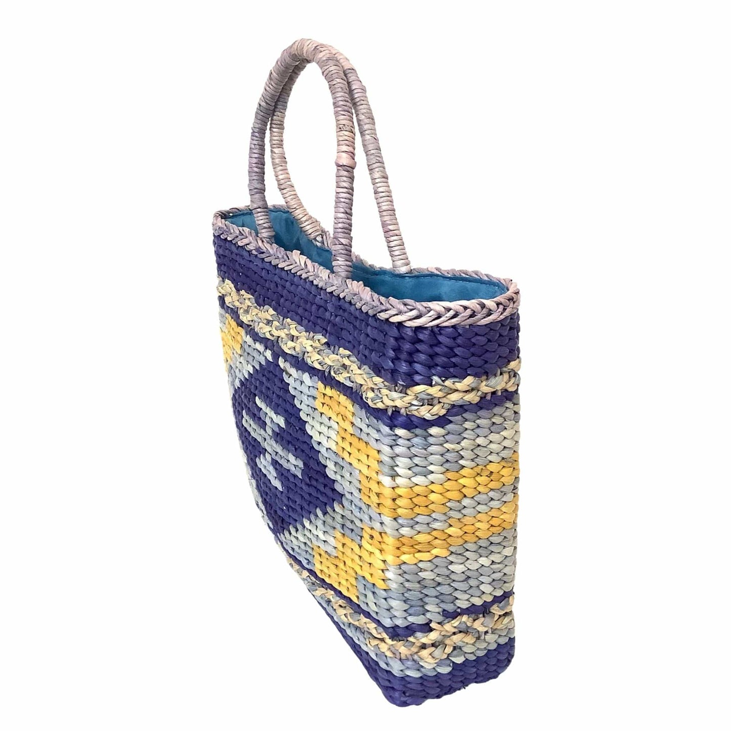 This tote bag is in excellent new old stock condition, never worn and carefully stored. A slight bend to the handles is present as shown in product images, consistent with the natural flexibility of corn husk materials. No damage or structural issues found. All weaving remains intact and secure. The cotton lining is clean and functional. Colors remain vibrant and true to original design.